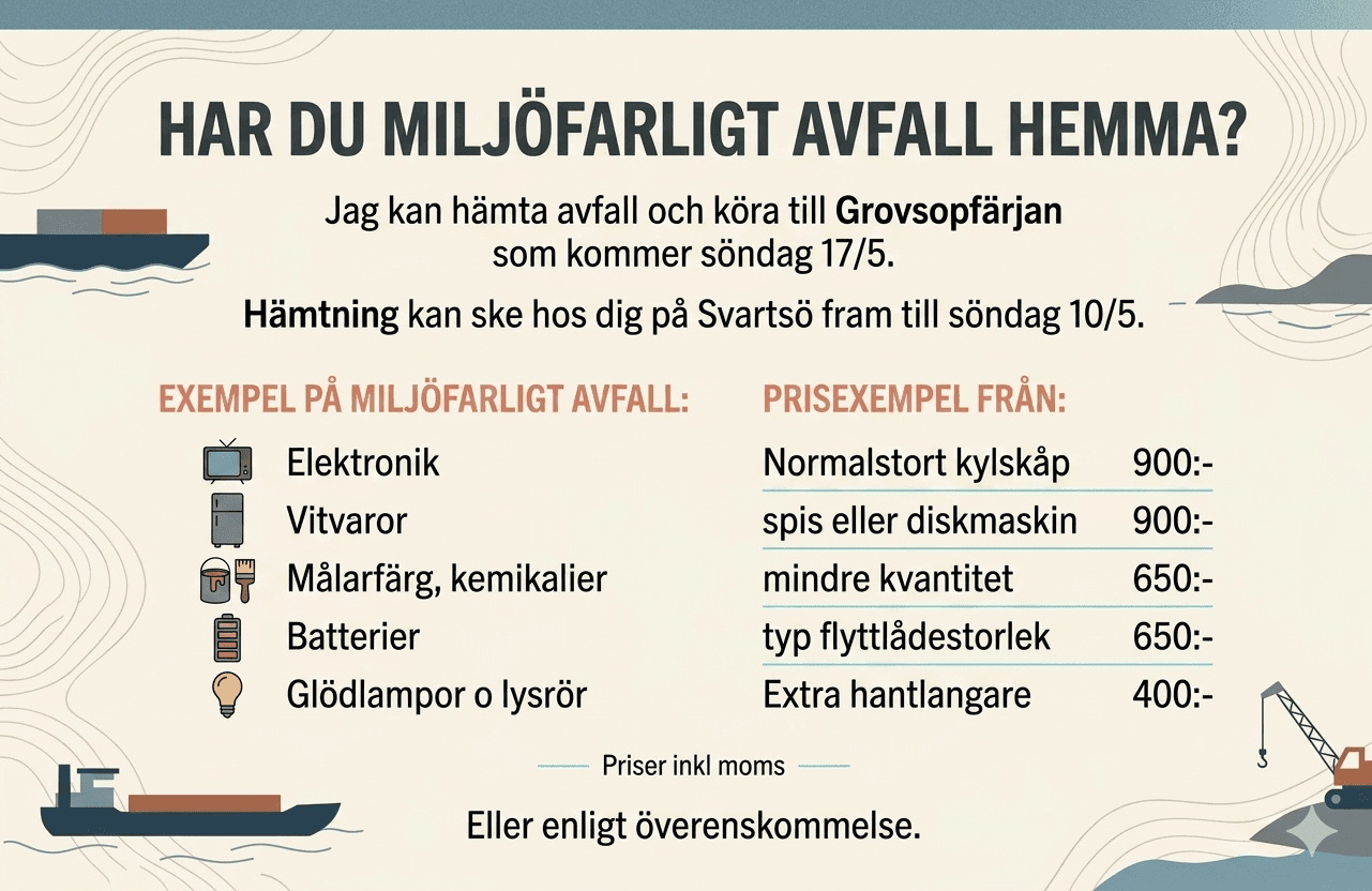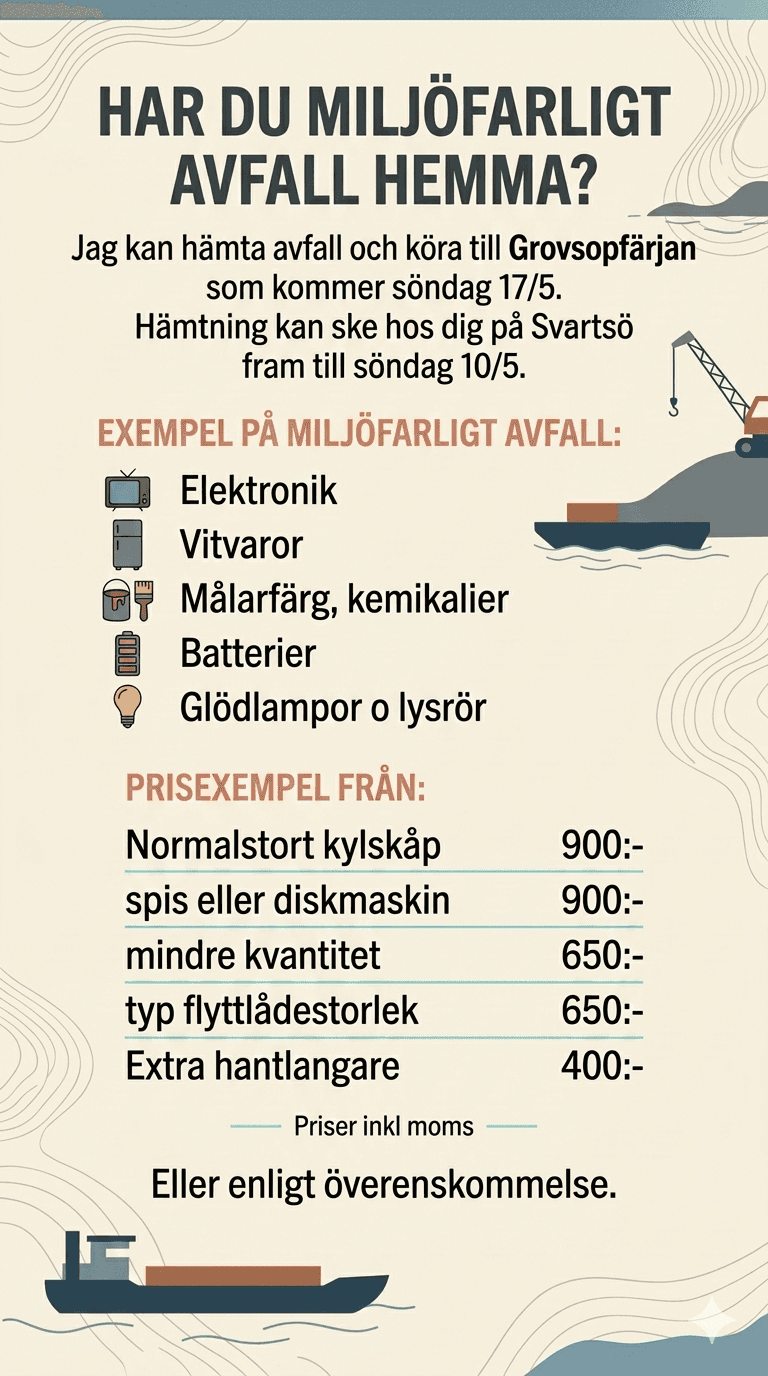 Svartsö Björntjänst erbjuder praktiska och pålitliga servicetjänster för boende och stugägare på Svartsö. Verksamheten omfattar lättare transporter med fyrhjuling och kärra, till exempel bortforsling av grovsopor och andra mindre uppdrag som kräver lokalkännedom och flexibilitet. Utöver transporter utförs även lättare trädgårdsarbete såsom gräsklippning och enklare slyröjning, samt fönsterputsning för både hus och stugor. För dig som inte alltid är på plats erbjuds även trygg och regelbunden hustillsyn, där huset kontrolleras för att tidigt upptäcka problem och säkerställa att allt är i ordning. Med lokal närvaro, god kännedom om ön och ett personligt bemötande är målet att underlätta vardagen och skapa trygghet i skärgården.